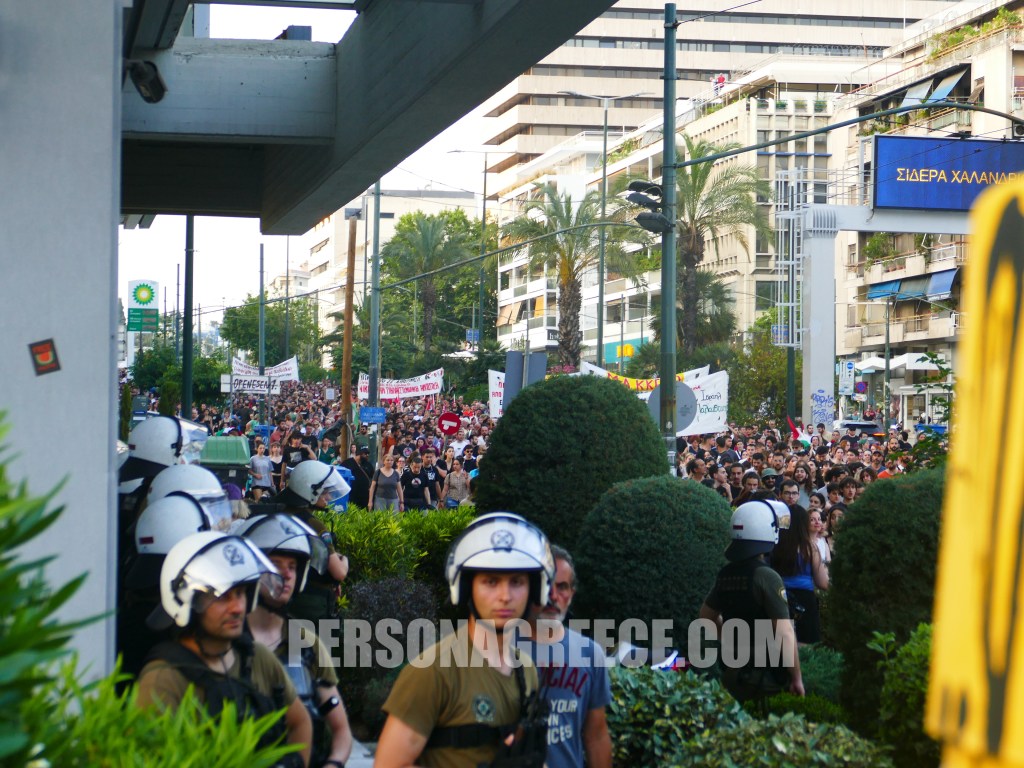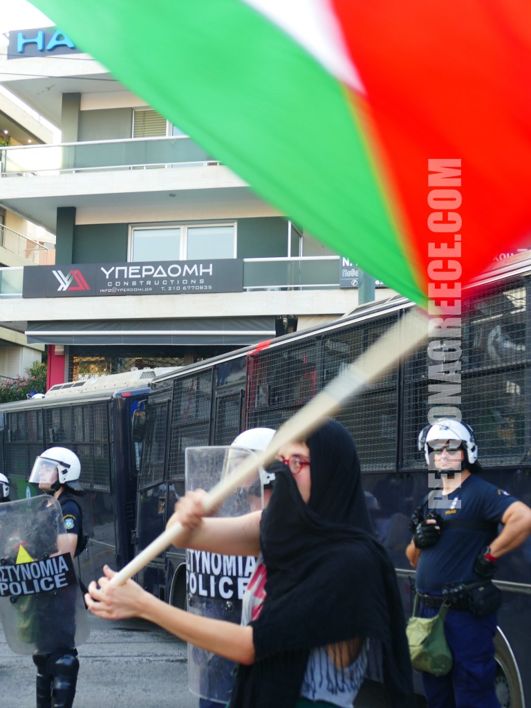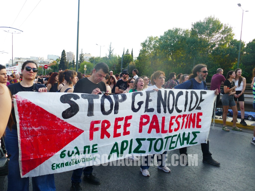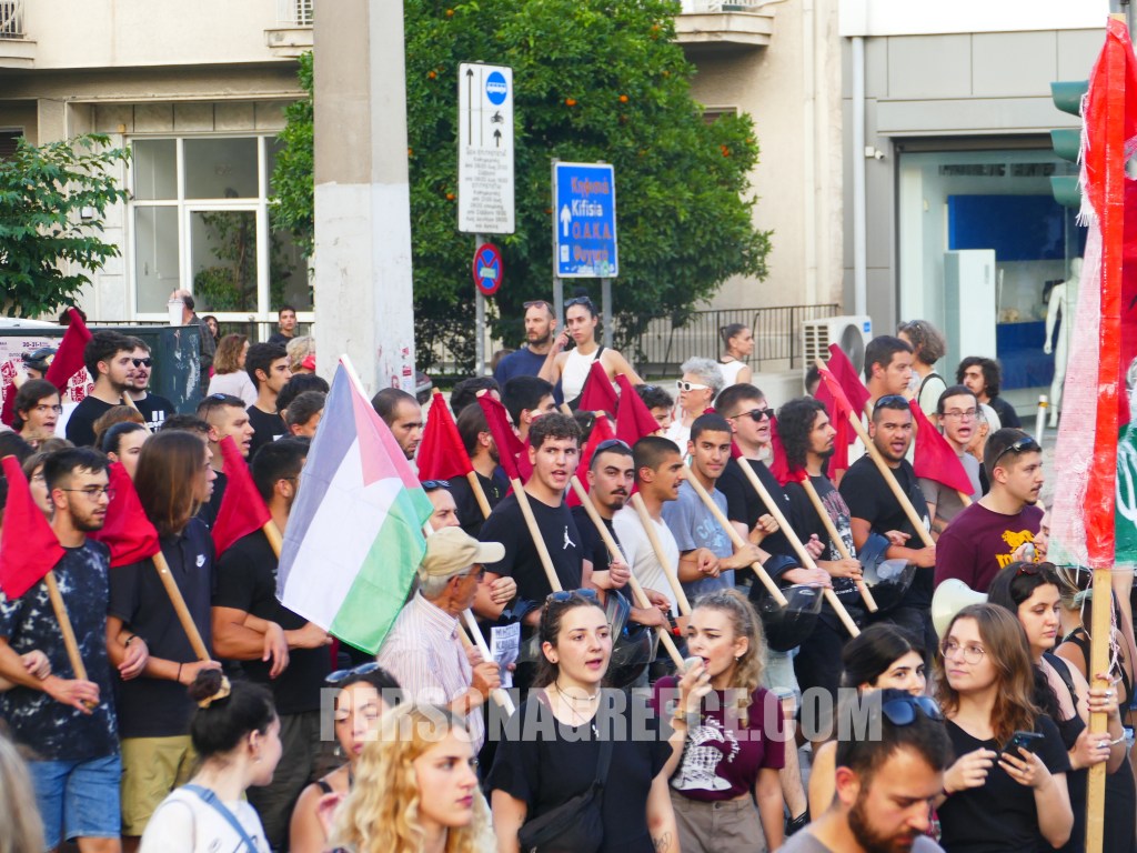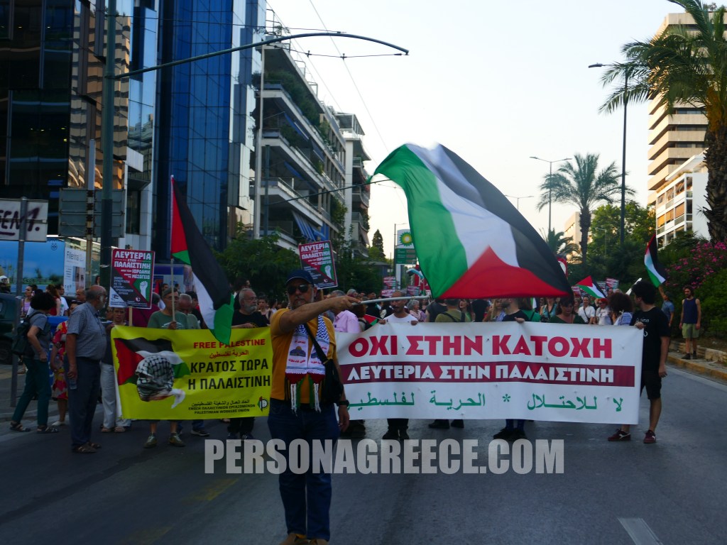 Περίπου 5.000 διαδηλωτές ξεκίνησαν από την Πανόρμου και κατευθύνθηκαν προς την πρεσβεία του Ισραήλ, διαμαρτυρόμενοι για την κατάληψη του πλοίου Madleen από τον ισραηλινό στρατό, ζητώντας την άμεση απελευθέρωση όσων επέβαιναν σε αυτό.