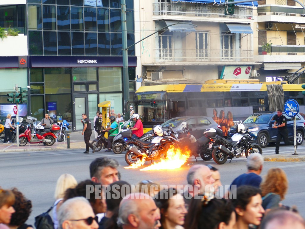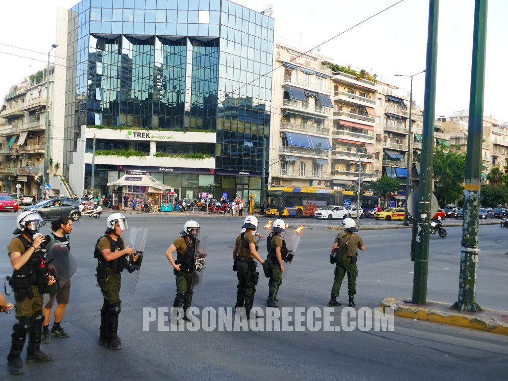 Έγινε ρίψη τριών αυτοσχέδιων εκρηκτικών (μολότοφ), χωρίς να υπάρξουν τραυματισμοί ή εκτεταμένες ζημιές.